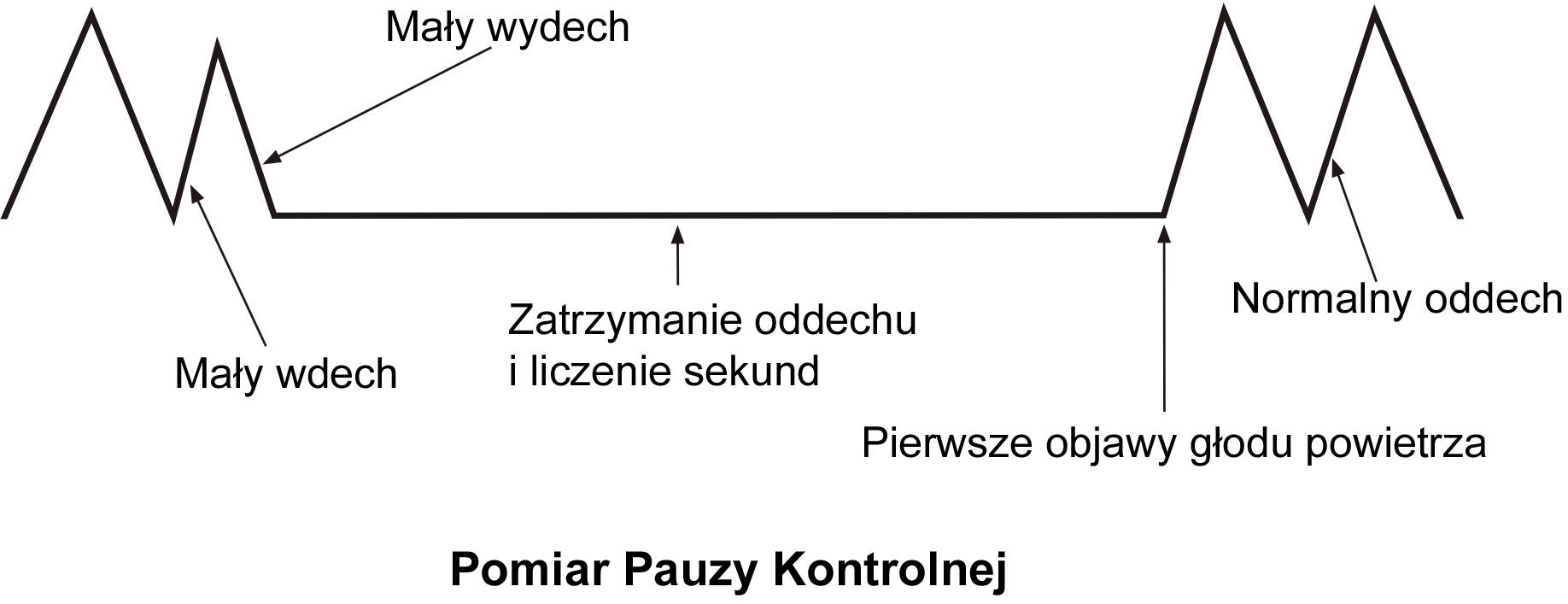 - Pauza kontrolna: zrób mały wdech i wydech, zatkaj nos palcami i policz za pomocą sekundnika ile czasu minie do pierwszej potrzeby wzięcia oddechu.