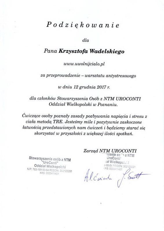 Warsztat dla osób z NTM UROCONTIPrzez Krzysztof Wadelski / 14 stycznia 2018 W dniu 12 grudnia 2017 roku przeprowadziliśmy warsztat antystresowy dla członków Stowarzyszenia osób z NTM „UroConti” Oddział Wielkopolski