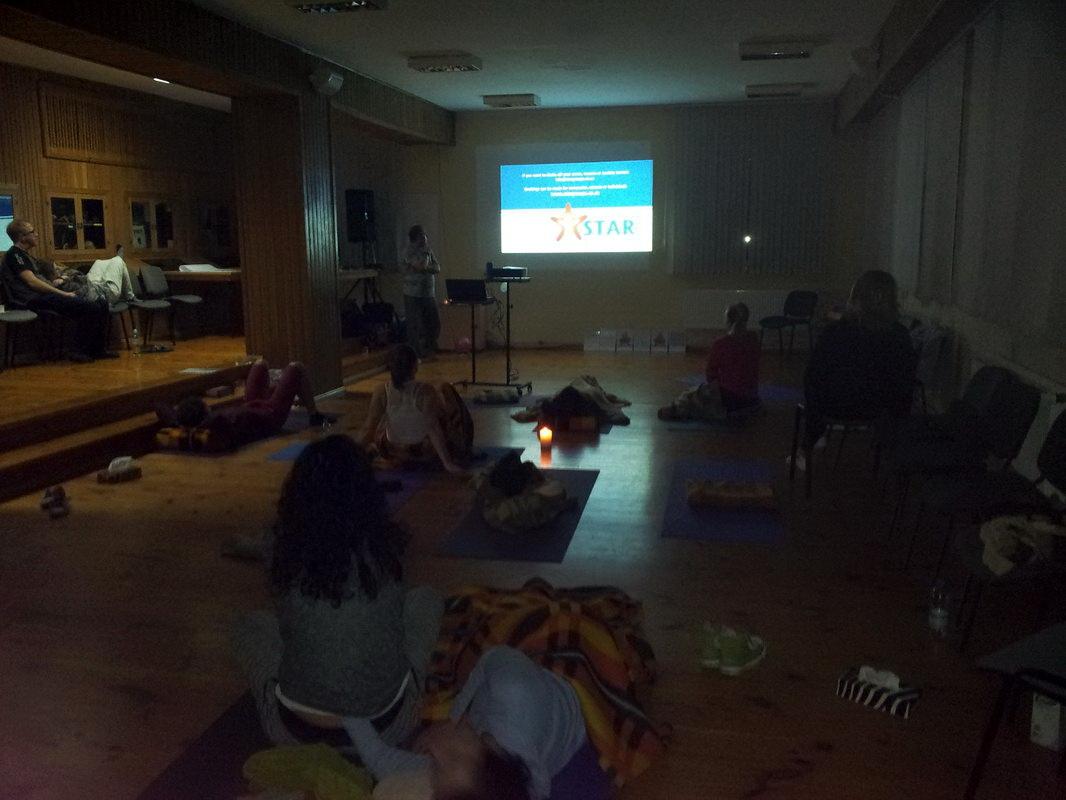 Medytowaliśmy w ruchu, tańczyliśmy, praktykowaliśmy świadomy oddech, uwalnialiśmy napięcia za pomocą metody TRE, dzieliliśmy się swoim doświadczeniem, zapoznawaliśmy się z najnowszymi wynikami badań nad stresem oraz z materiałami multimedialnymi.
